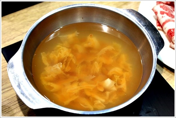 | | 點好餐後四個人也各自選了湯底… 我點的是泡菜鍋,因為覺得天氣冷冷的就想喝辣辣的,哈哈… |
