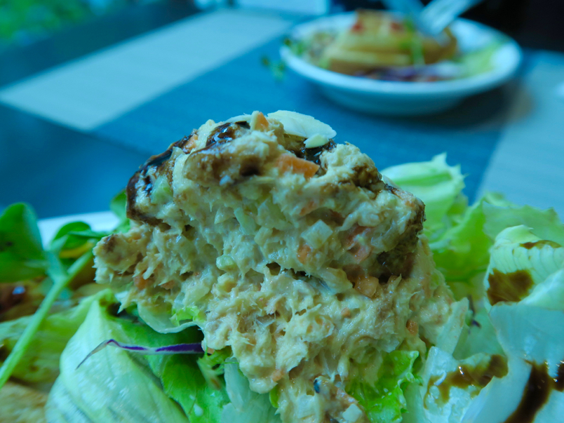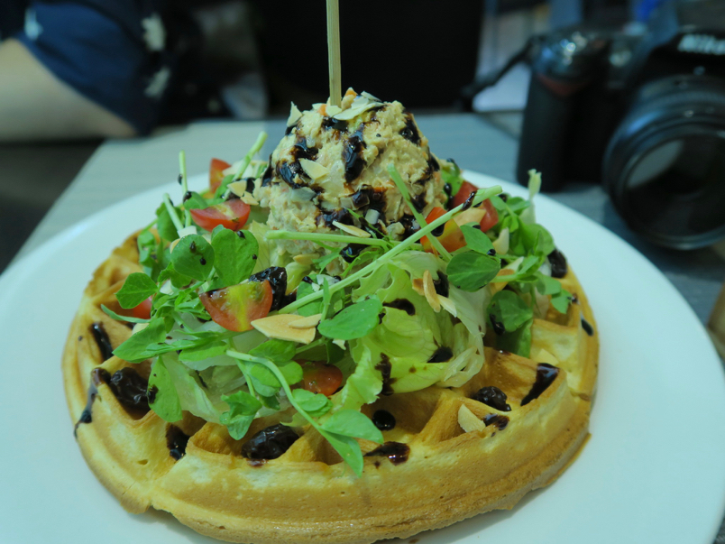 特製鮪魚醬、生菜、綿密鬆餅的組合