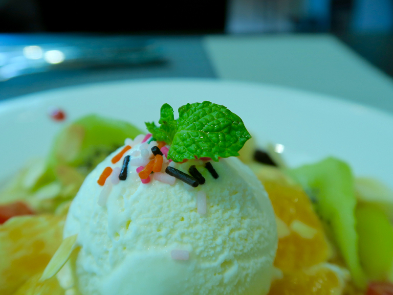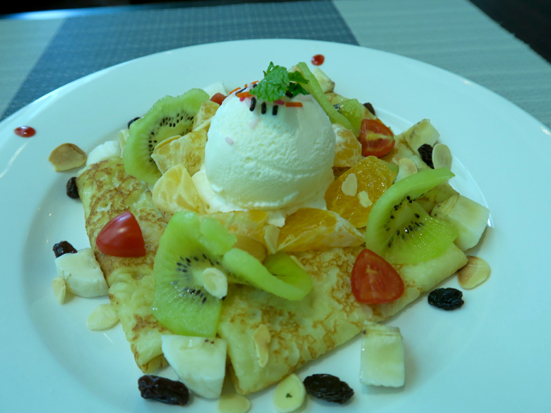 香濃薄餅、鮮奶油、當季水果、香草冰淇淋的組合