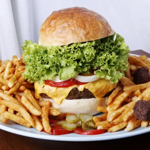 不過,竟然都來吃漢堡了,當然要體脂肪破表囉!至少生菜跟番茄的份量也給得不少,我們沒有再額外加其他配料,更可以吃出漢堡肉口味跟層次。咬下第一口,火烤過的漢堡肉依然充滿著肉汁,搭配著帶有奶香的切達起司,吃起來不膩,美味加倍。
