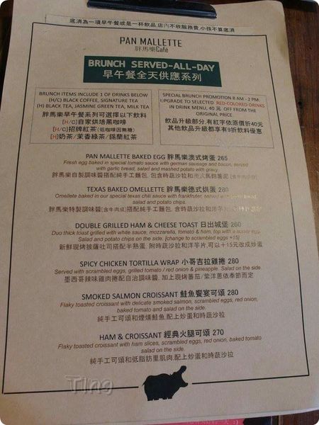 低消:一項早午餐或是一杯飲品;小孩不算底消