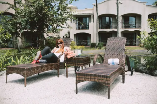 告訴自己坐在泳池邊也是很浪漫的事情。
