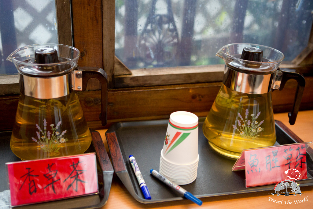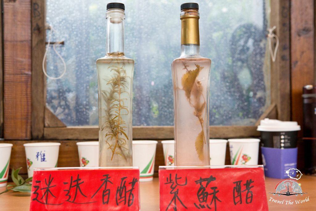 現場招待,茶與醋飲。配上一塊深坑四寶之一的