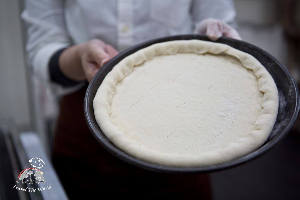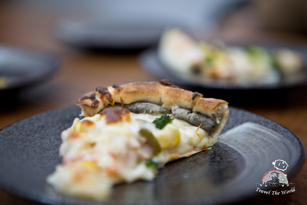 重點在披薩放入了鼠麴粿,微甜還帶有香Q口感。