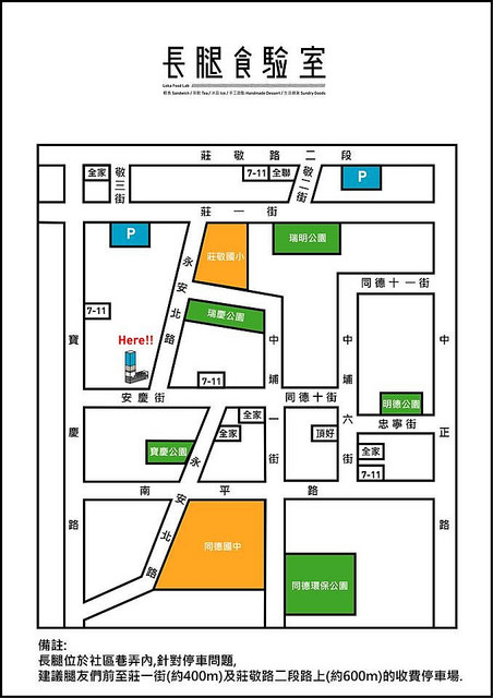 長腿食驗室位置在中正路尾過南平路周邊的巷弄裡,三角窗店面不會難找