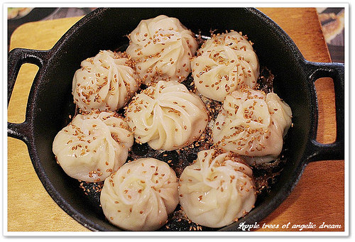 煎包外皮有嚼勁撒上芝麻增添香氣,而且最近鐵鍋料理正夯看起來很棒