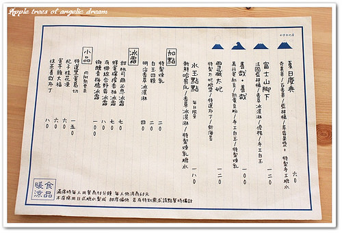 MENU,有銼冰、冰霜、甜點等,價位在60~180元,每人低消為60元