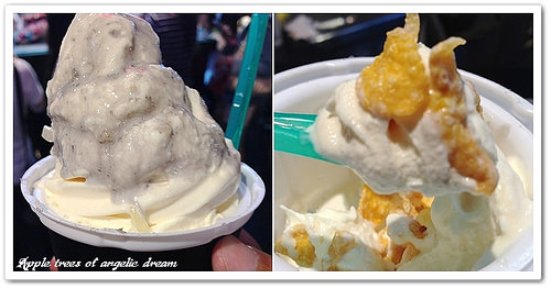 香蕉牛奶口味霜淇淋吃起來口感柔順,裡頭還加入脆片增加口感