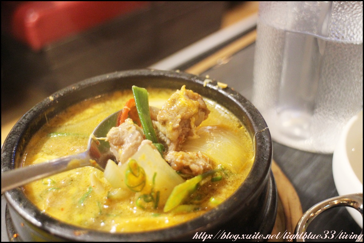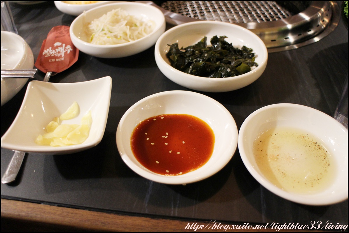 大蒜跟韓式沾醬,這樣桌上已經一堆盤子碟子了,雖然看起來式很豐盛,不過服務生不知道是不是怕尖峰時間出菜會擠在一起,所以卯起來上菜,也不管我們桌上已經一堆東西要擺不下了,所有生的、熟的都一股腦兒出菜,然後全部在三十分鐘內都上桌,還都要我們趁熱吃,其實會讓客人手忙腳亂而且精神緊張,這點強烈希望改善。不過因為我們在週間晚上來用餐,後頭沒有候位的人,因此也沒有在原先告知的用餐時間限制後被趕,要不然的話應該感受會更差吧。