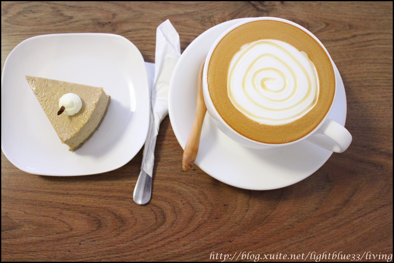 因為上次吃午餐時對咖啡跟甜點很有興趣,所以我這天又帶著電腦來吃下午茶加工作。一塊蛋糕加一杯飲料200元,我選伯爵茶起司蛋糕95+店家推薦的蜂蜜拿鐵135