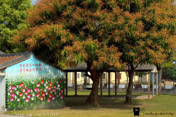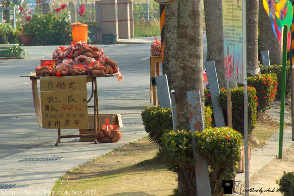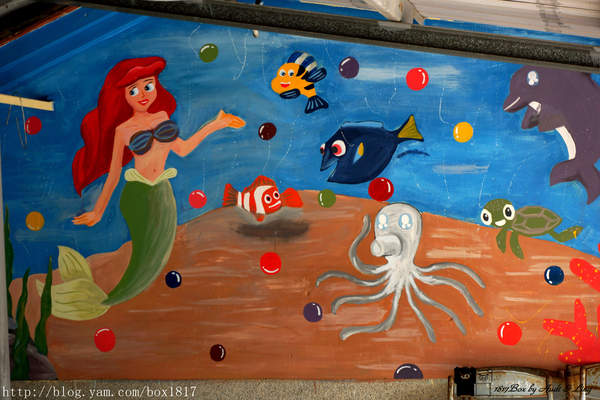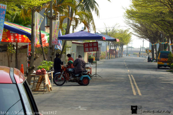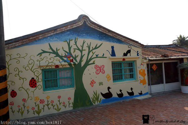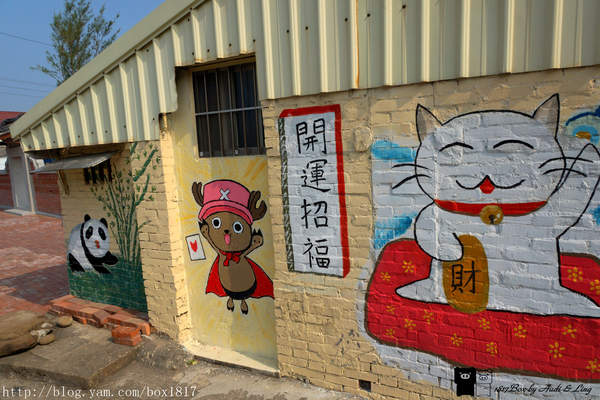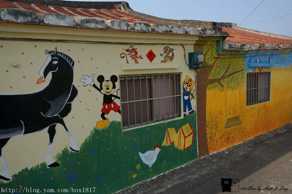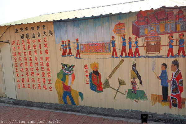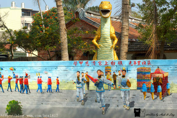 在這邊販賣農特產的阿姨介紹從福安宮旁走到廟後面,可以看看光華里的彩繪,