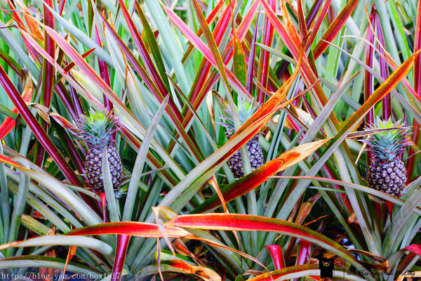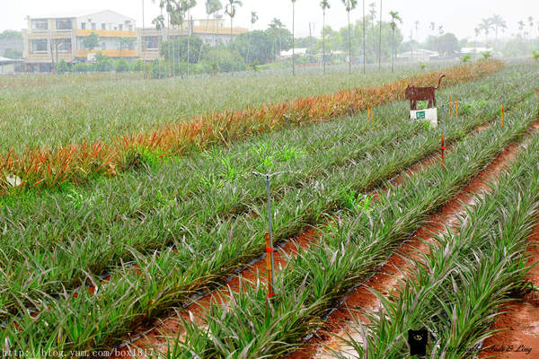 遠遠的拍攝鳳梨,鳳梨在田裡長這樣,