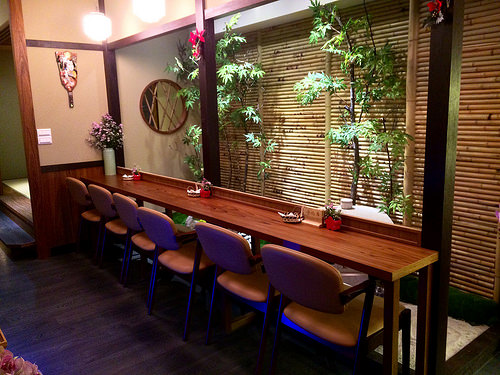 甚至還有日式庭園造景,讓靠牆桌一點兒都不無聊呢