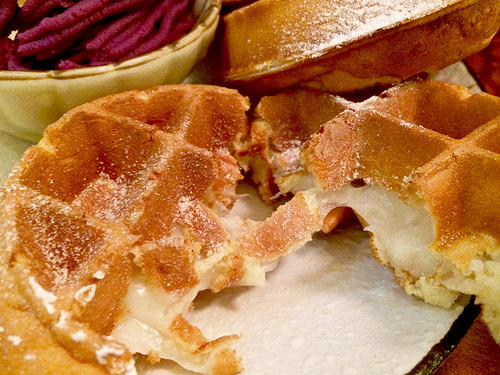 夾的麻糬給得很大方,與酥脆的鬆餅組合根本太犯規