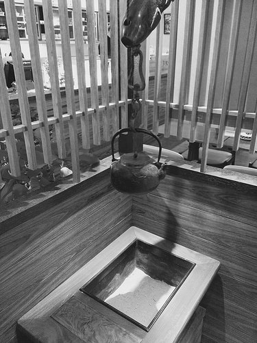 往左拉開木門,一旁迎接客人的囲炉裏(いろり)讓人會心一笑