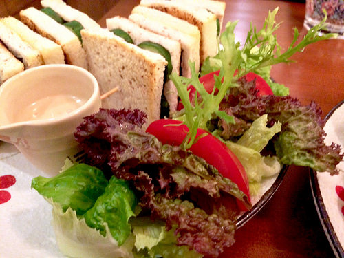一旁都附有蜜地瓜&新鮮的生菜沙拉,胡麻沙拉醬分開放這點good~~