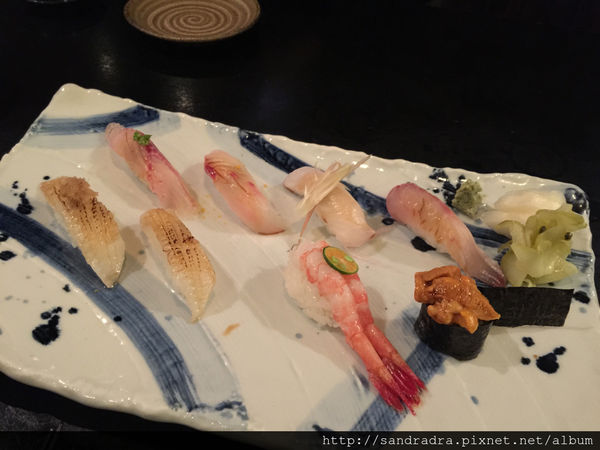 *握壽司以日本魚+本港魚;2個比目魚 (抓抓的最愛 所以我說要兩個~ 炙燒後很香 肉質很甜),甜蝦,海膽(超鮮甜 完全沒有瓦斯味唷),紅甘魚,青甘魚,黃雞魚~