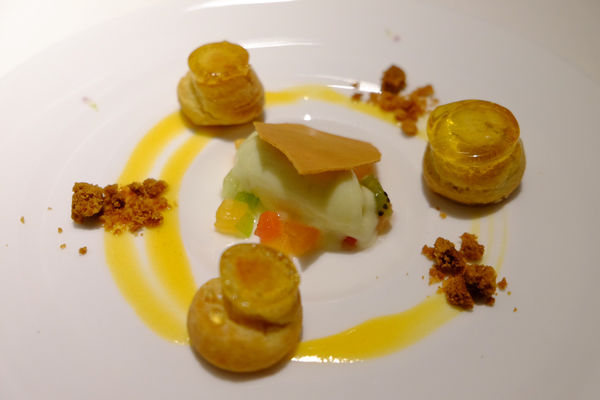 茶點(好吃)和兩道甜點 (sorbet 和焦糖泡芙, 都喜歡)