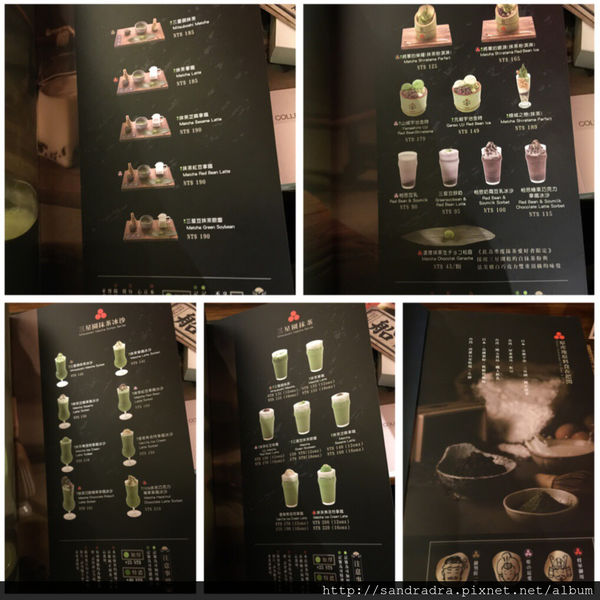 餐點全部以抹茶為主,有冰飲及熱飲,還有部分冰淇淋。點抹茶時可以選擇濃度(另加價)