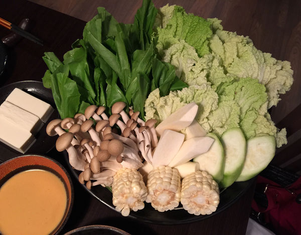 *青菜拼盤(甘蔗玉米、皎白筍、絲瓜、白菜、豆腐⋯)接在主食後面,每種菜都很嫩,很新鮮~好像不用煮過也可以直接享用~