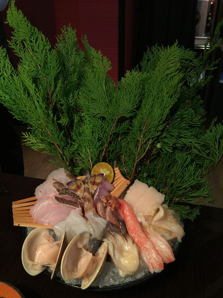 海鮮拼盤包含北海道干貝、大明蝦、扇蝦、象拔蚌、大蛤蠣、鸚哥魚、赤快石斑魚⋯等鮮又甜的海鮮