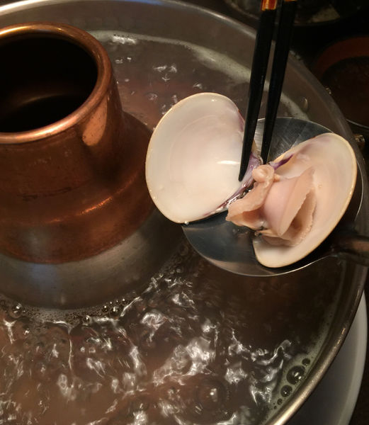 這裡的火鍋湯底只加了昆布熬煮,不加任何調味,給客人的吃的是食材的鮮嫩。因為外婆不吃牛肉 所以我們先吃牛肉 之後把整鍋湯換掉再煮海鮮(細心的服務)。