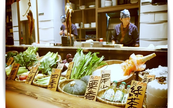 座位前有許多新鮮漁獲與蔬菜,想吃甚麼就點甚麼。