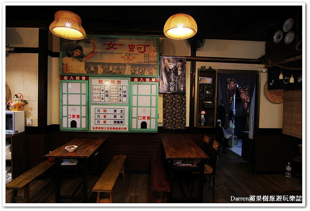 竹編燈具、老電影院售票口、木桌子長板凳,老麵攤搭上很流行的復古元素變成懷舊餐廳