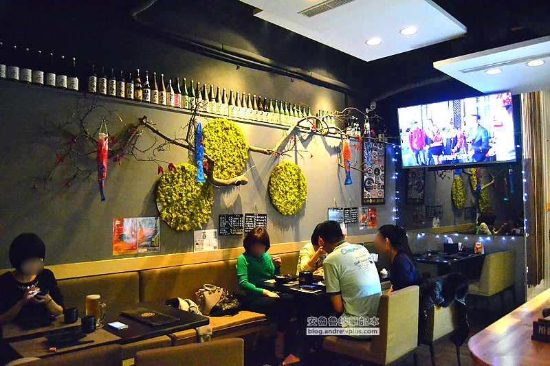 日式居酒屋的裝潢風格,也有大螢幕可觀賞重要的比賽,大約可容納40人左右,也有能跟主廚聊天的吧台座位!