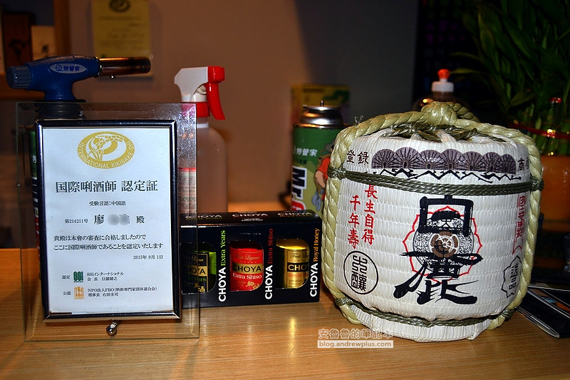 ▼櫃檯上這張證書吸引了我,原來主廚可是有日本清酒師的認證的! 店內也有多種的清酒供客人選擇! 近年來安魯魯才開始喝清酒,每次去日本至少會買個便宜的利樂包來過過癮,對於日本現行以薰、爽、醇、熟等風味區分的方法還算是很陌生,有興趣的朋友可以跟主廚討教討教!