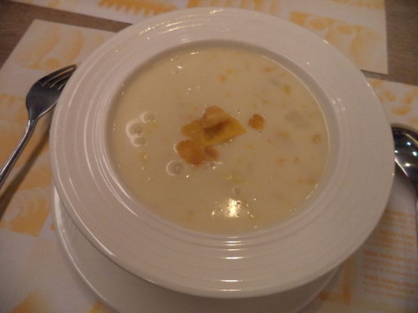 他的濃湯也很特別~很少吃到加了玉米脆片的濃湯~讓這道湯增添了豐富的口感