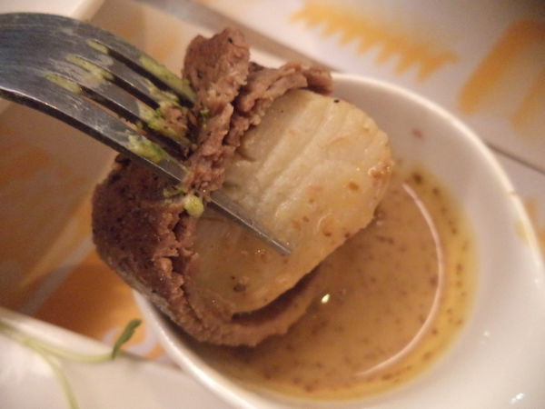 軟嫩多汁的杏鮑菇配上鮮美的沙朗,沒想到會這麼美妙,這時再來上一點胡麻醬!!