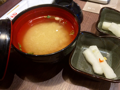 味噌湯與小菜是隨餐附贈,不過只有湯可以無限續加