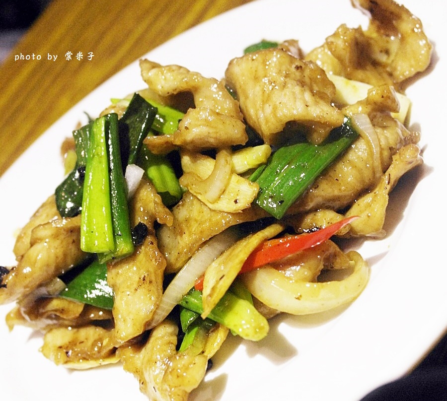 用蔥和許多嫩薑片熱炒出來的松阪豬味道更是香,