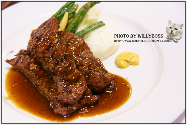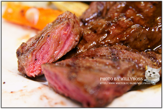 我的燒烤(Prime)級極黑牛去骨牛小排佐紅酒醬580元,加一百元雞腿變牛排,這樣的價值感應該好多了XD,更重要的是這牛小排吃來真的很有水準,粉紅色滿滿肉汁的切面讓人胃口大開,吃進嘴裡首先感受到的是Q彈卻不難咬的清脆口感,接著是牛肉的鮮甜肉香席捲而來,這個等級的牛排在其他餐廳賣到千元的大有人在,580元就能吃那麼大的分量加上整份套餐,的確是物有所值讓人回味再三啊!