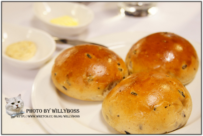 烤過的麵包熱呼呼的,外脆內Q,可以搭配的有鮪魚沙拉醬和一般奶油,鮪魚沙拉醬鹹香夠味不論是沾麵包或是單吃都很有水準!