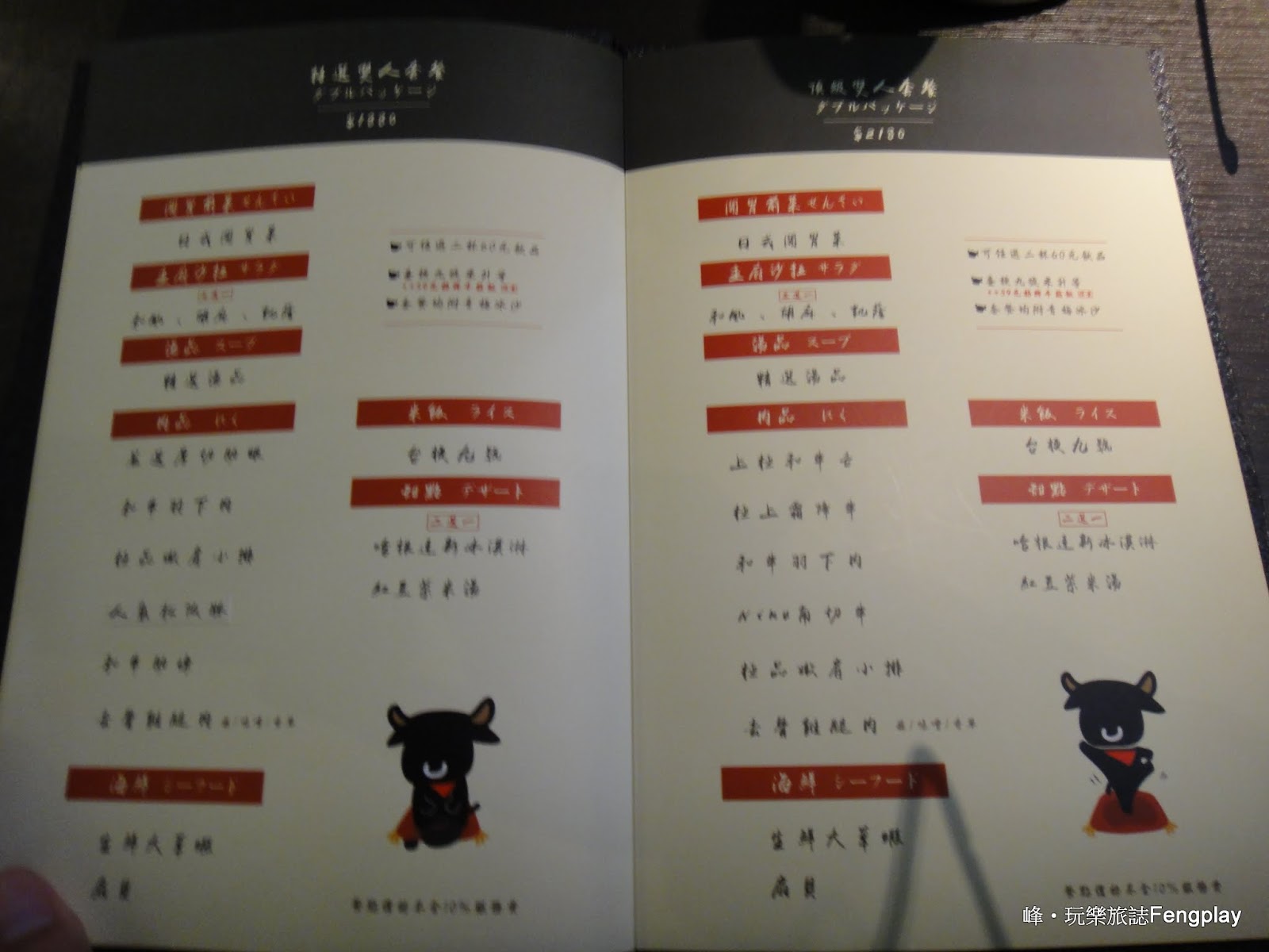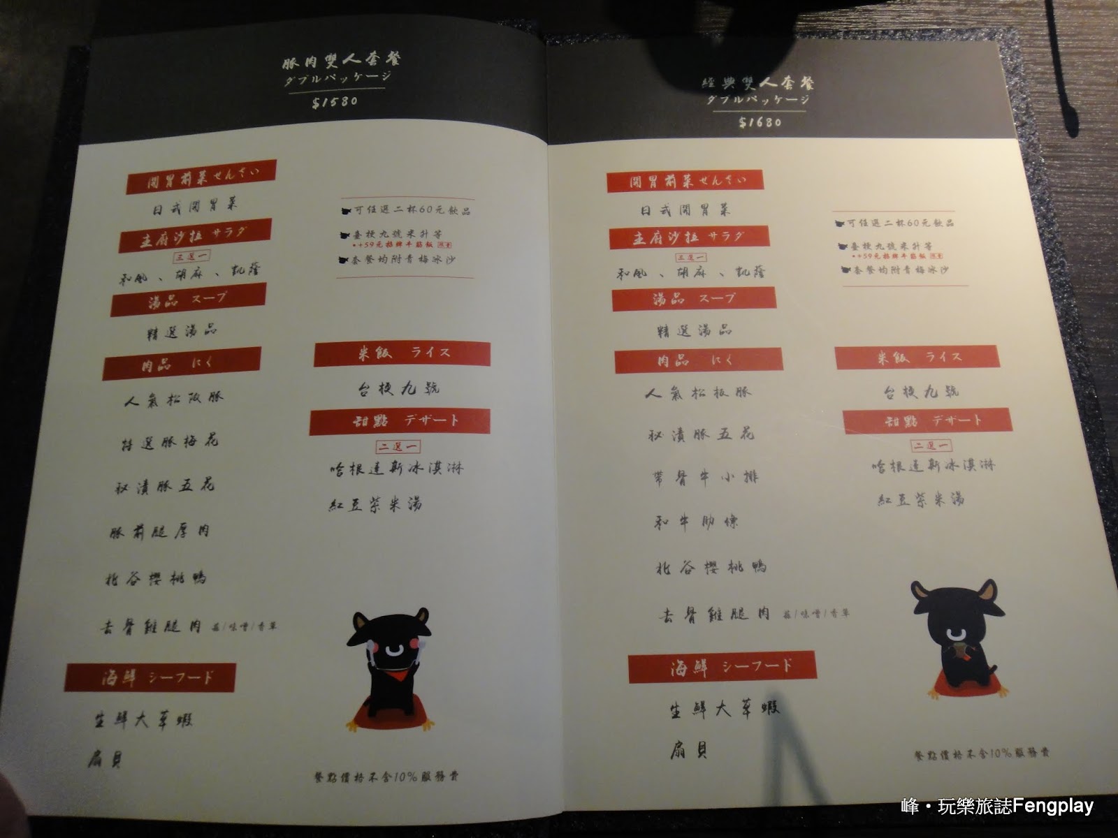 ▲這次我們點的是1680的套餐,只有這份套餐可搭豬肉與牛肉,之後的套餐都是全牛料理,