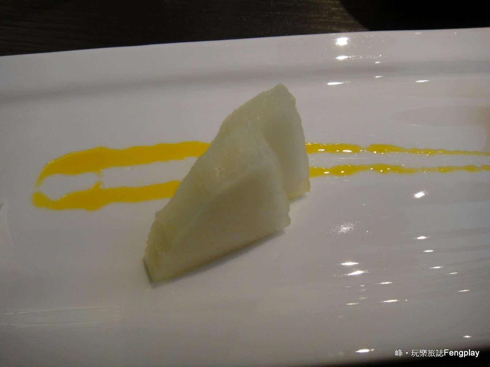 ▲前菜:辣螺肉,前菜屬於很日式風格的小菜,常在日本料理會見到,用西式方格呈現