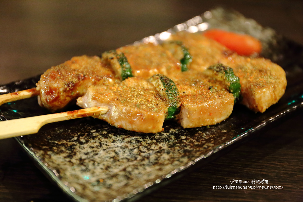 一般在串燒店或居酒屋裡所吃的到的串燒豬肉,都是將切成一口大小的豬肉用竹串串在一起,工地的豬肉串燒,簡直是豬排來著,超級厚切!