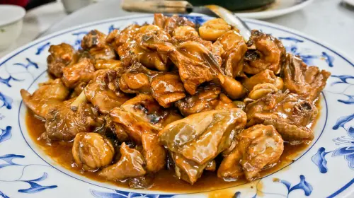 淮揚菜的經典料理,以青蔥與開陽爆香熬煮出來的湯頭,雖然食材簡單,但風味卻是雋永。褐色的湯頭一上桌便傳來陣陣鮮香,喝起來的味道既有開陽的鮮味也有大 蔥的甜味,因用煨麵的方式煨煮,麵條同湯頭一起熬煮,使得湯體稠香,韻味濃厚。麵條煨得軟爛卻把湯的鮮甜都吸入其中,十分入味,是道功夫麵。不愧是老店, 想吃煨麵還是得來這種老店小館子才好。