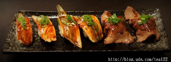 畏懼寄生蟲的我,不食生魚片,對炙燒火候挑剔至極,而這家的炙燒綜合握壽司(六貫),卻是我每次到訪,必點菜色,必然有其拿手之處,濃郁的醬燒味,含豐富油脂的鮭魚腹,入口即化;搭上七味粉肉片,軟嫰可口,一點不覺老;這一礏盤吃下來,180元,份量剛剛好。