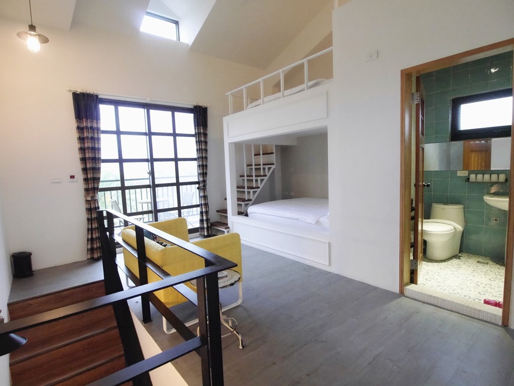 順著樓梯往上,除了眼前上下舖的兩張雙人床舖規畫