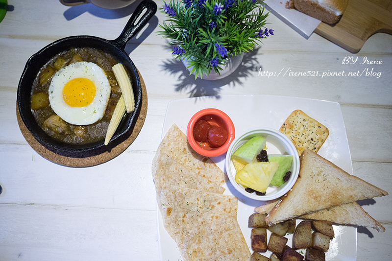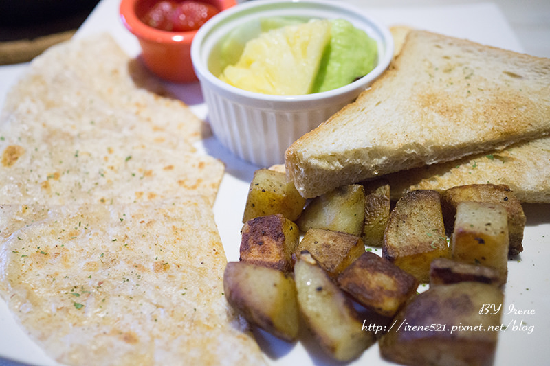 無用藥土雞蛋、醋蜜番茄、胚芽吐司、香煎全麥蛋餅皮、炒薯塊(或選船型薯/薯條/煎薯餅)。