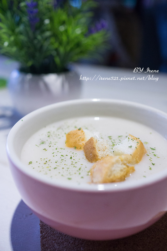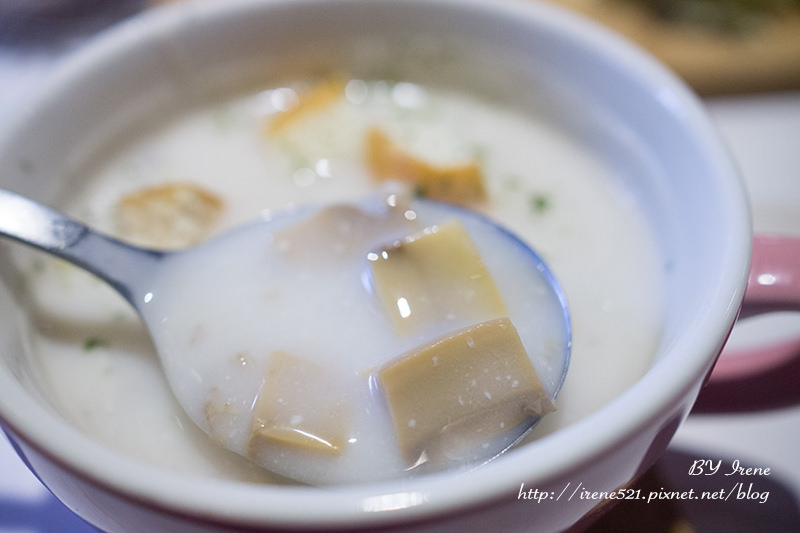 每日濃湯為巧達湯,蘑菇很多,味道清爽不厚重,標榜健康路線。