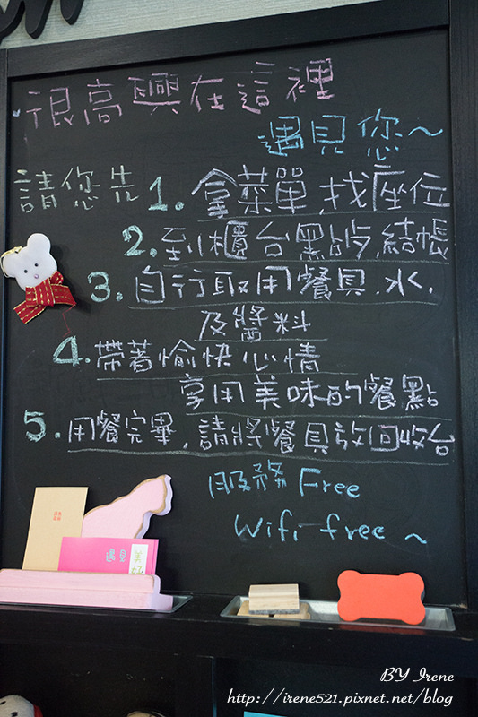 採半自助的用餐方式,先自己找位置後,至櫃台點餐結帳,自行拿取餐具,用完餐後自己回收餐盤,