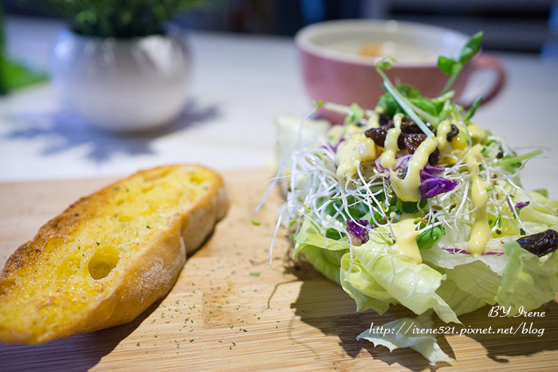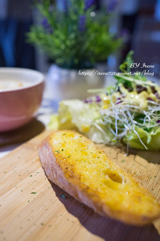 生菜的品質新鮮,蒜味麵包脆而香,好吃。