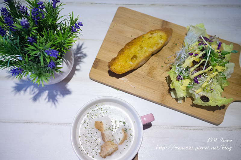 義大利麵加價NT.85升級套餐,多了每日濃湯、麵包、沙拉(或脆薯);