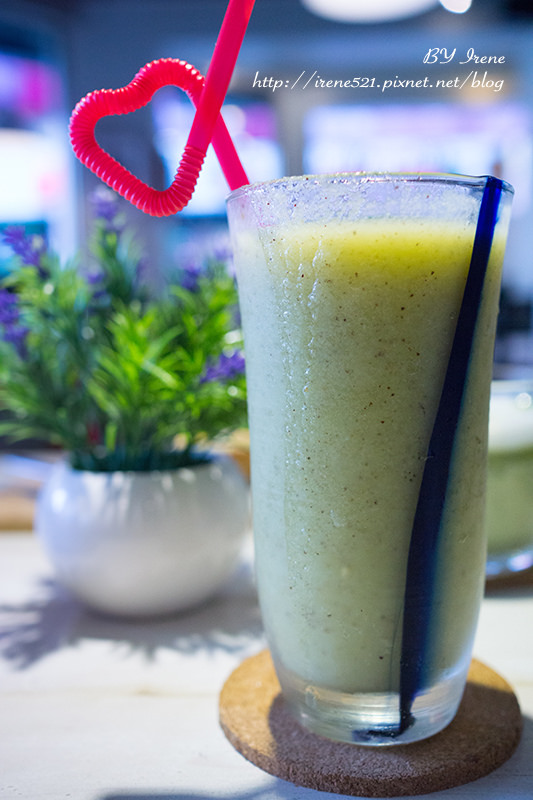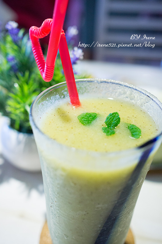 現打的果汁「蘋果奇異果」(NT.90),奇異果的微酸,蘋果的淡淡香氣,自然清爽。