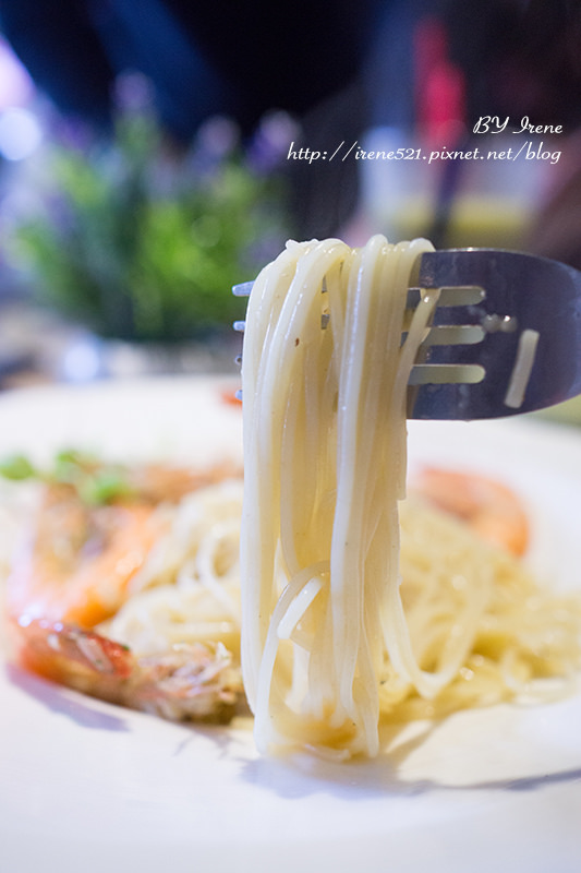 義大利麵是天使細麵,蒜炒的方式香而不膩,麵條偏軟些,但有入味。