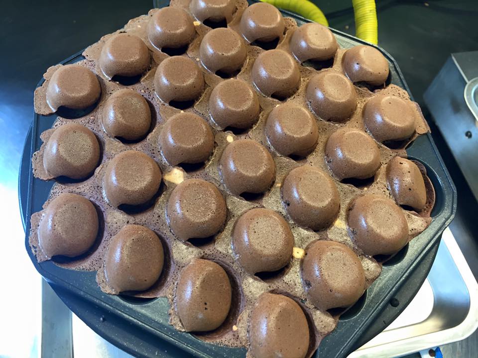 倒出來的雞蛋仔呈金黃色,色澤誘人,有蛋糕的香味,加上中間是半空的,咬下時口感特別彈牙。*皇家朱古力$50